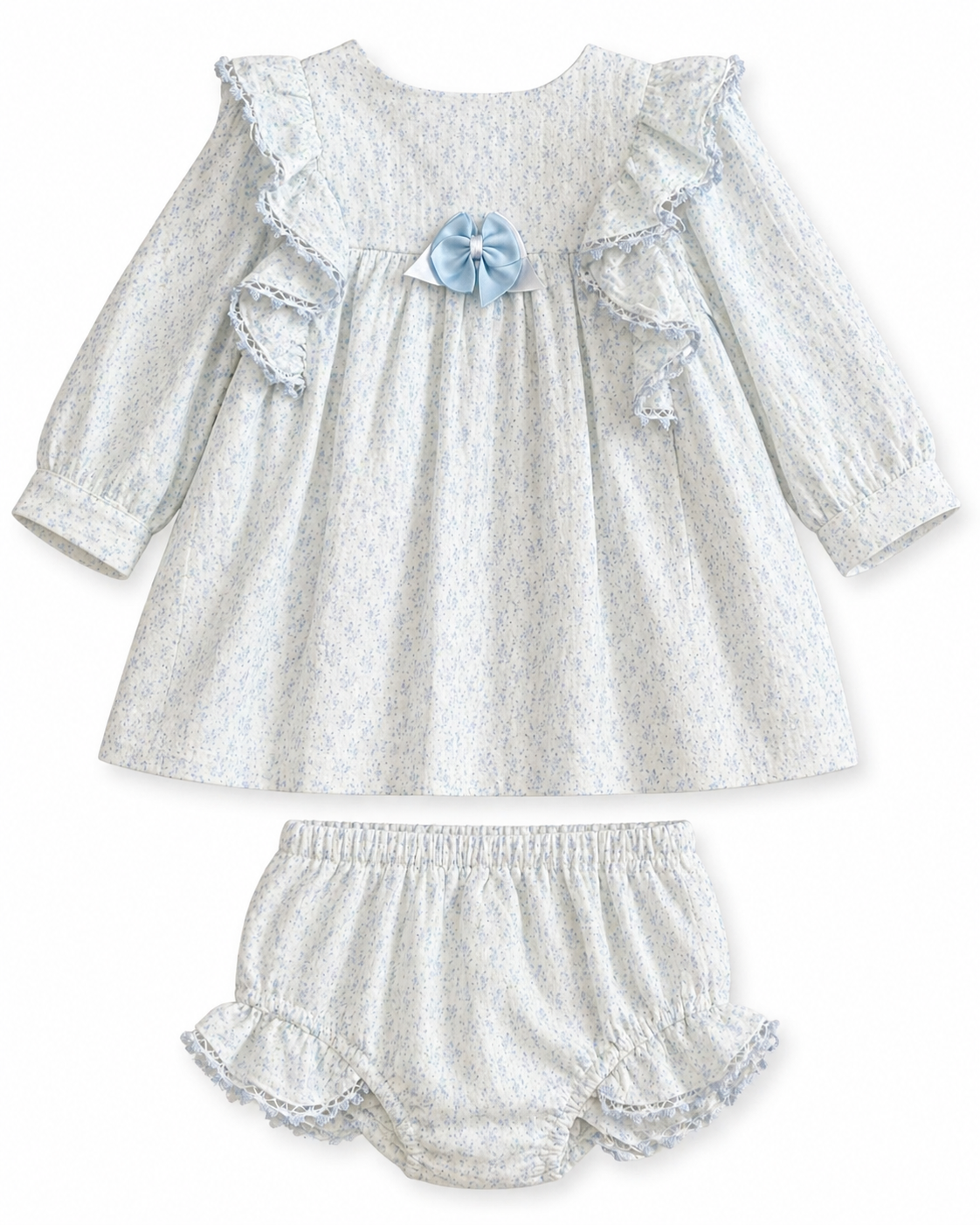 Baby Girl Light Blue Cotton Dress & Shorts Set