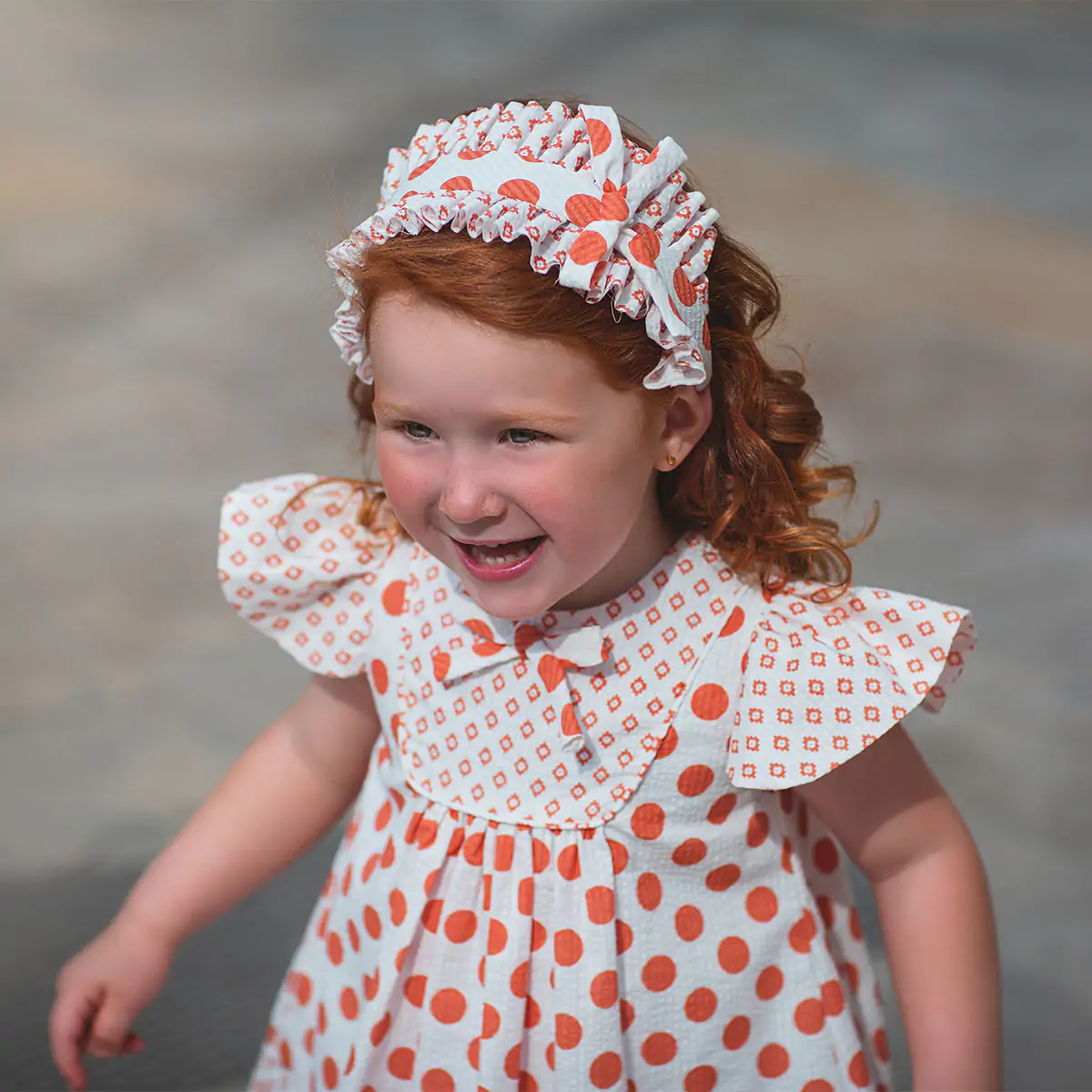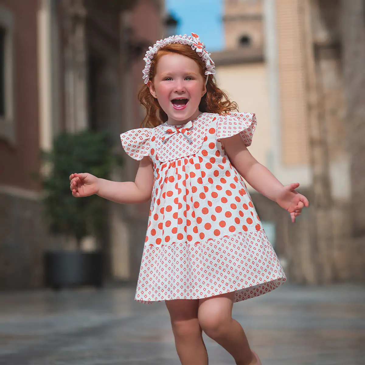 Beautiful baby dress for girls by Meraki, printed with white and red dots pattern. Wonderfully feminine, this dress style has ruffles detailing. Lined in a soft cotton blend with an additional panel of tulle, it fastens with a concealed zip on the back for a neat finish.