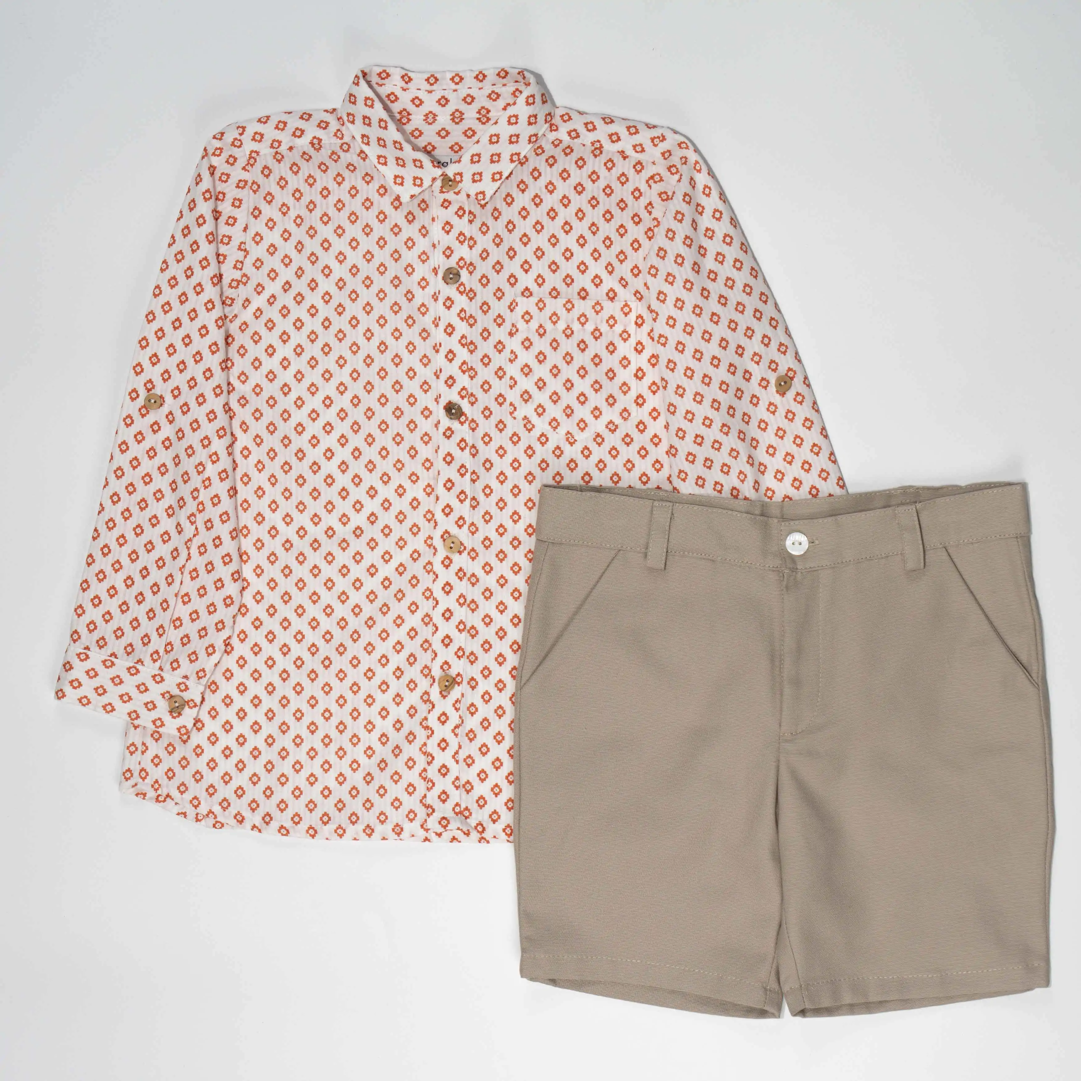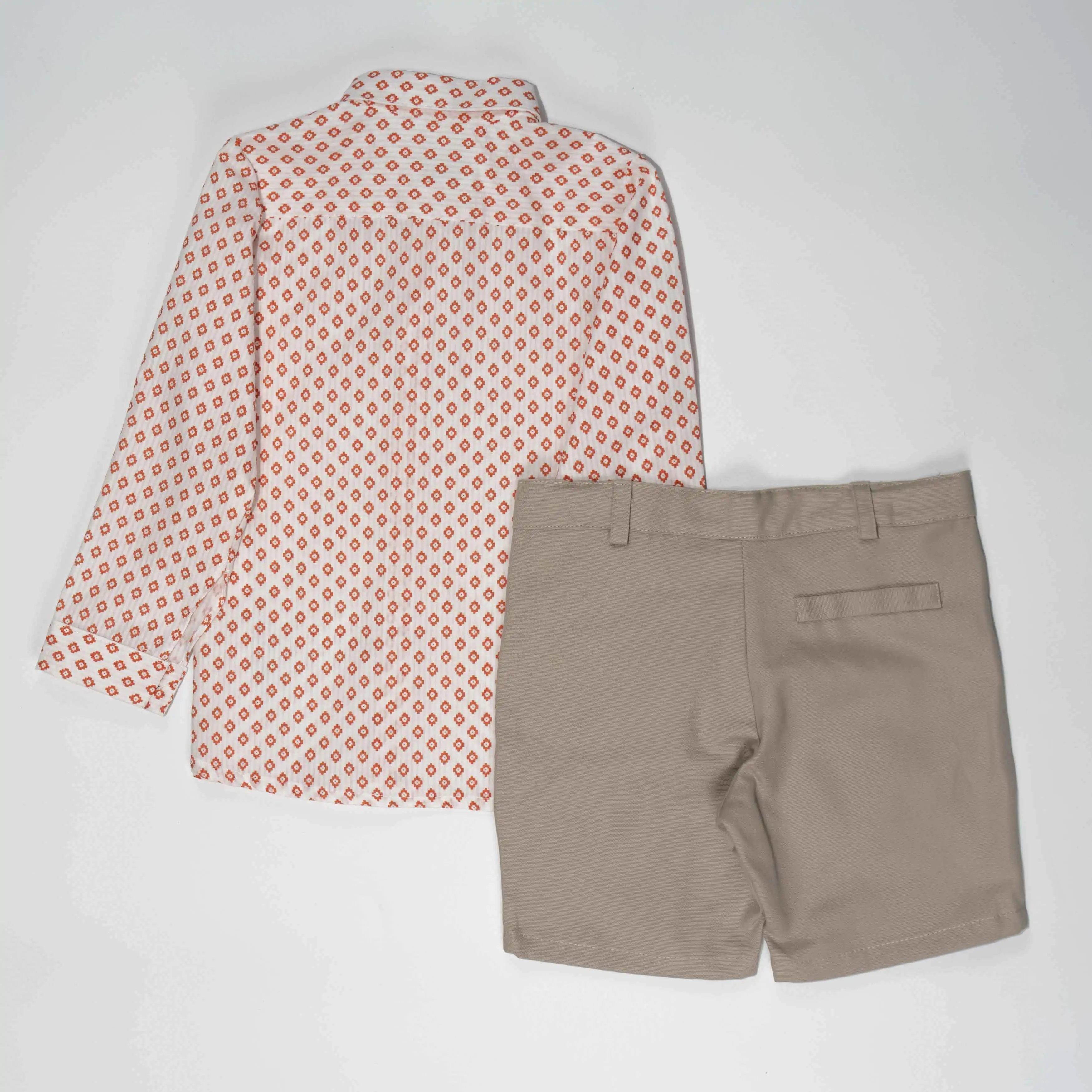 Beautiful boy set by Meraki, printed with white and red pattern. The set has a cotton dress shirt and shorts. The dress is sold separetely